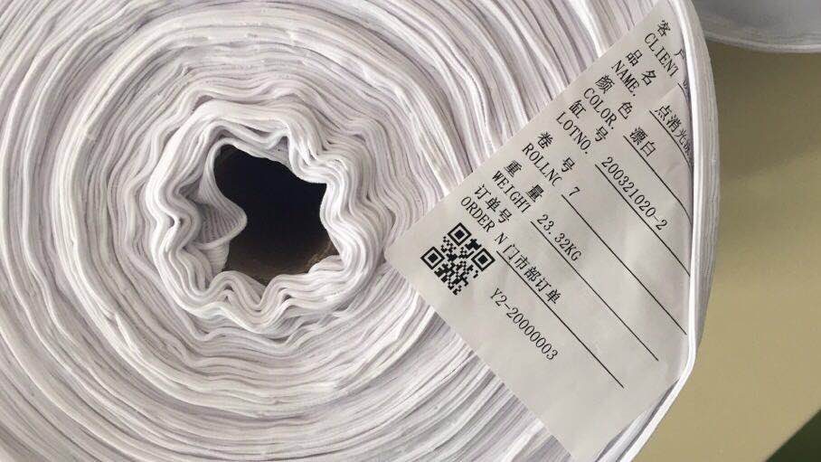 以前是找人统一印刷的标签,验布时还是需要手写卷号、重量、米数,对于客户要求的标签,必须要电脑那边一卷卷打印出来,事后一个个贴,现在用上我们系统,实时读取重量和长度数据,实时打印出来,不再需要手写了,码单和疵点也不需要记录了,全部电子化数据上传电脑。